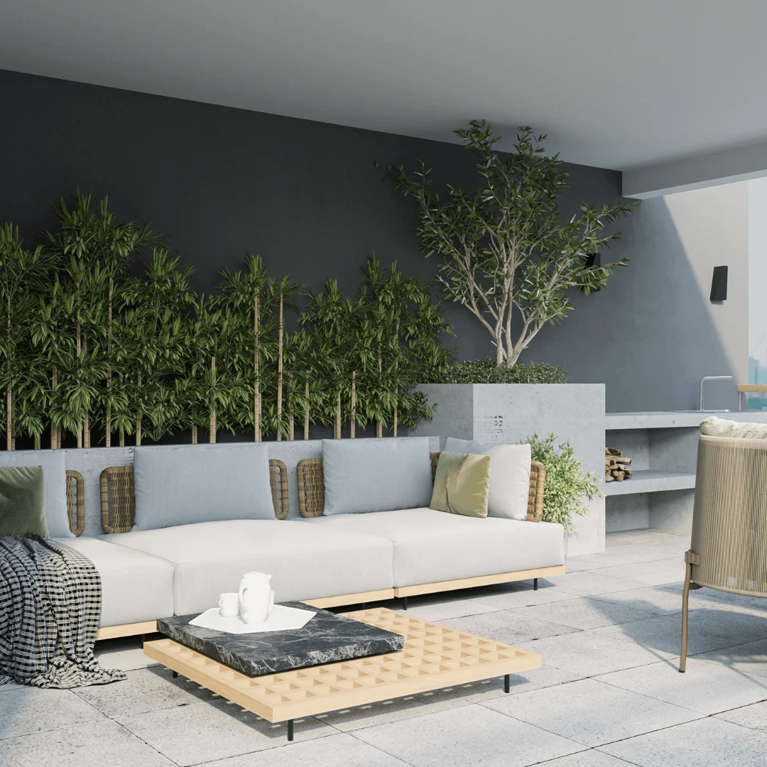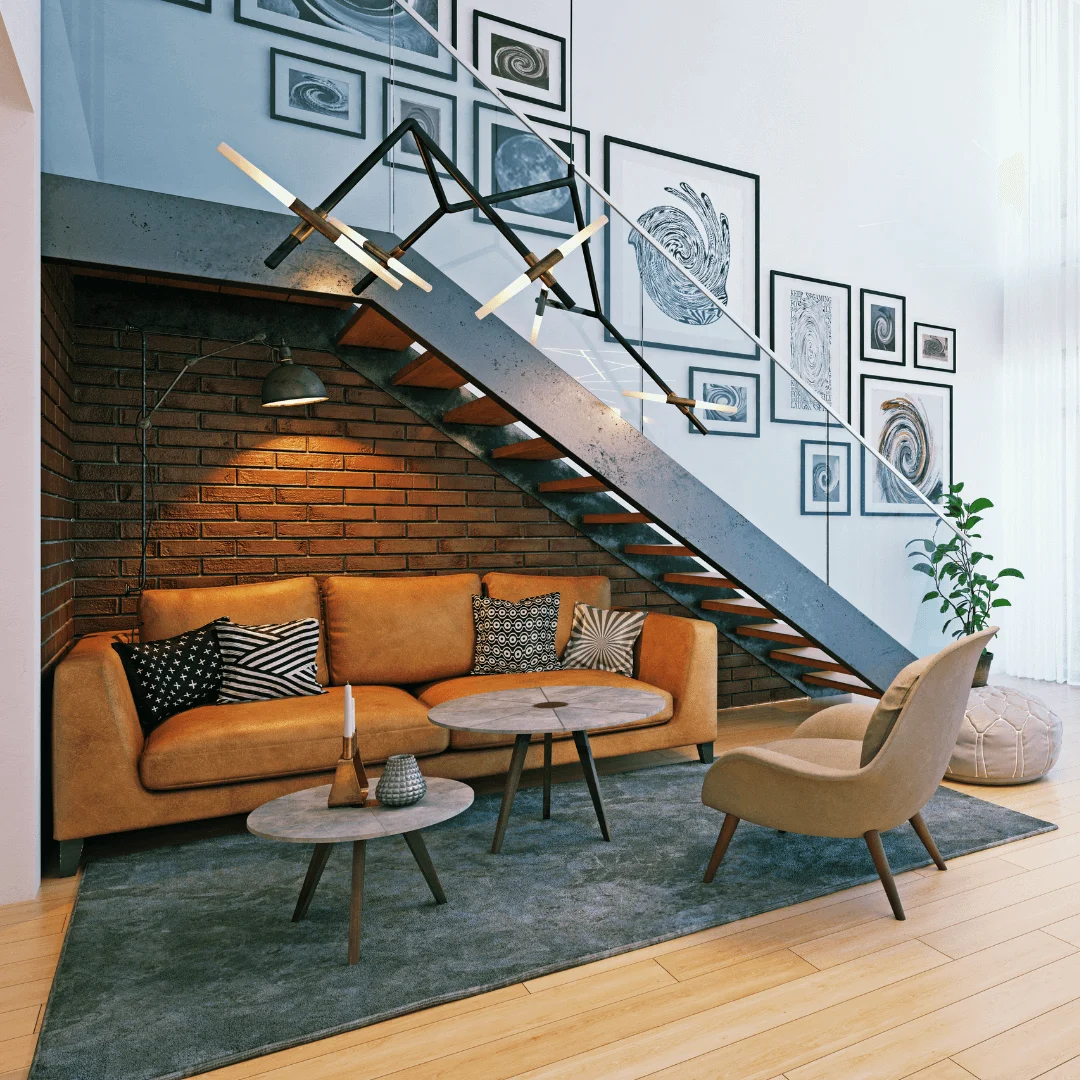 Modern Indian Living Space with Jute Rug and Low Seating